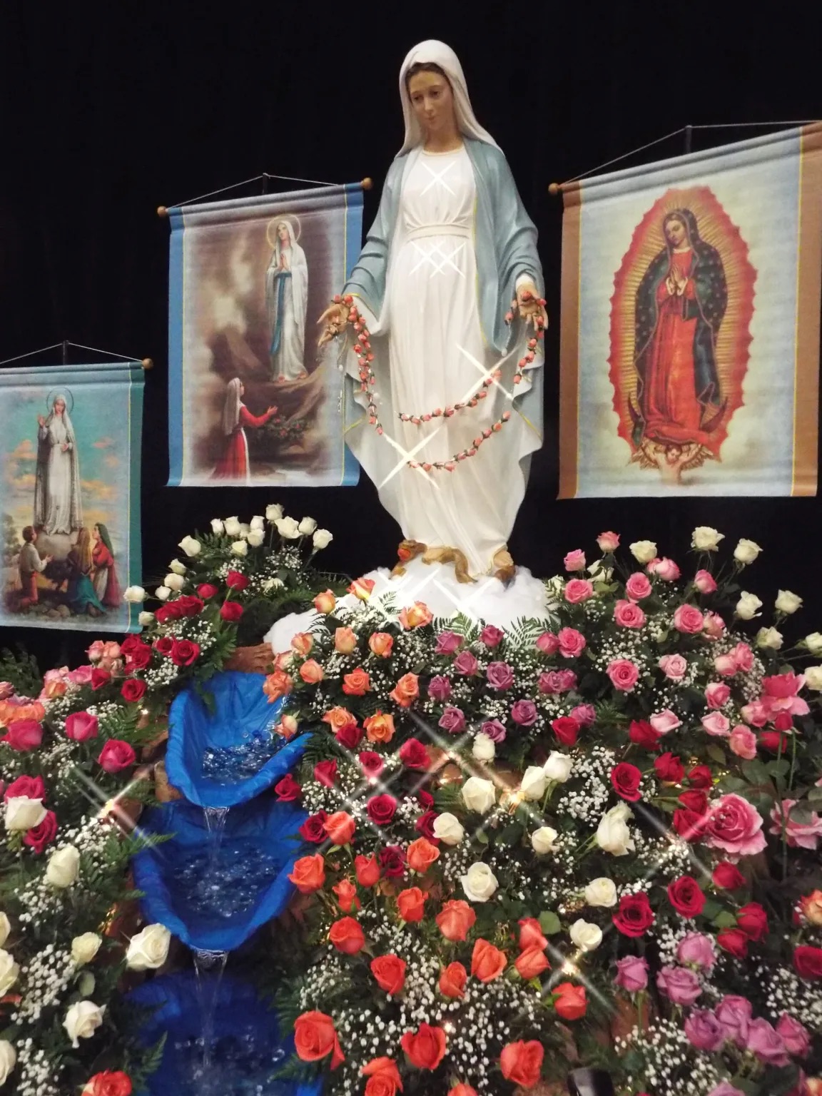 At the Conference, a statue of Our Lady is present.